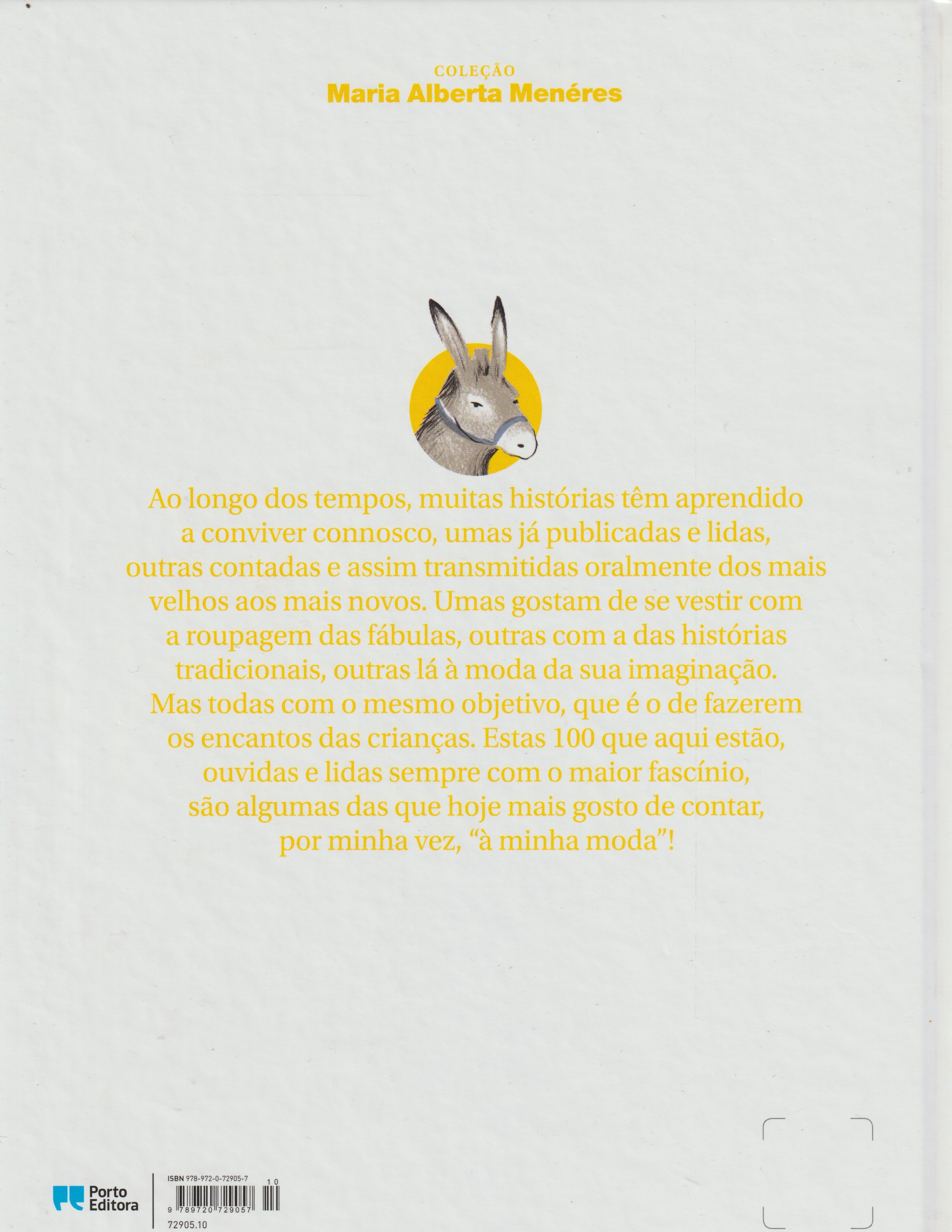 Ao longo dos tempos, muitas histórias têm aprendido a conviver connosco, umas já publicadas e lidas, outras contadas e assim transmitidas oralmente dos mais velhos aos mais novos. Umas gostam de se vestir com a roupagem das fábulas, outras com a das histórias tradicionais, outras lá à moda da sua imaginação. Mas todas com o mesmo objetivo, que é o de fazerem os encantos das crianças. Estas 100 que aqui estão, ouvidas e lidas sempre com o maior fascínio, são algumas das que hoje mais gosto de contar, por minha vez, "à minha moda"!