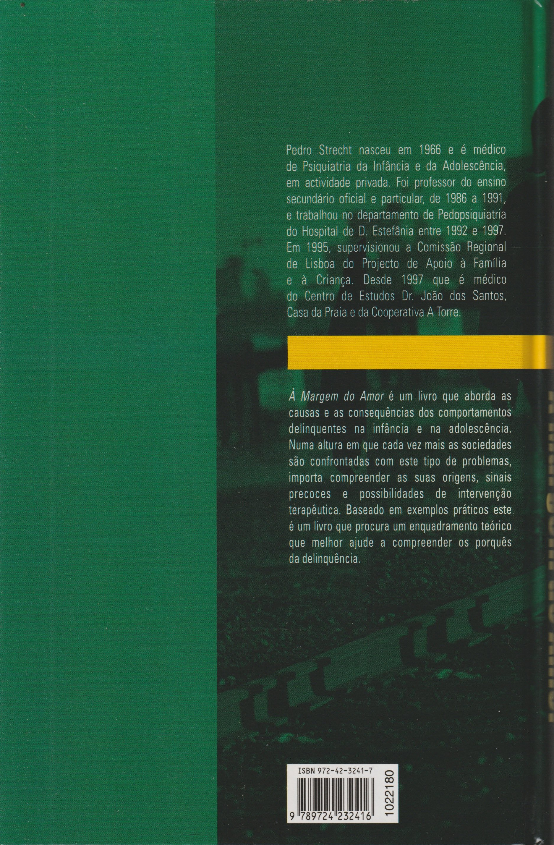 A delinquência juvenil é uma questão premente e fulcral nos dias de hoje. Mas ela não surgiu assim, subitamente, do nada. Neste seu novo livro, À Margem do Amor (Notas sobre Delinquência Juvenil), Pedro Strecht analisa a origem do problema, fala-nos da importância da prevenção, de como se pode intervir, do problema do abuso sexual (que, por coincidência, os últimos tempos atiraram para as primeiras páginas dos jornais), etc.. Porque todos nós vemos, sentimos, somos parte deste problema, devemos saber encará-lo, percebê-lo, ajudarmos a ultrapassá-lo.