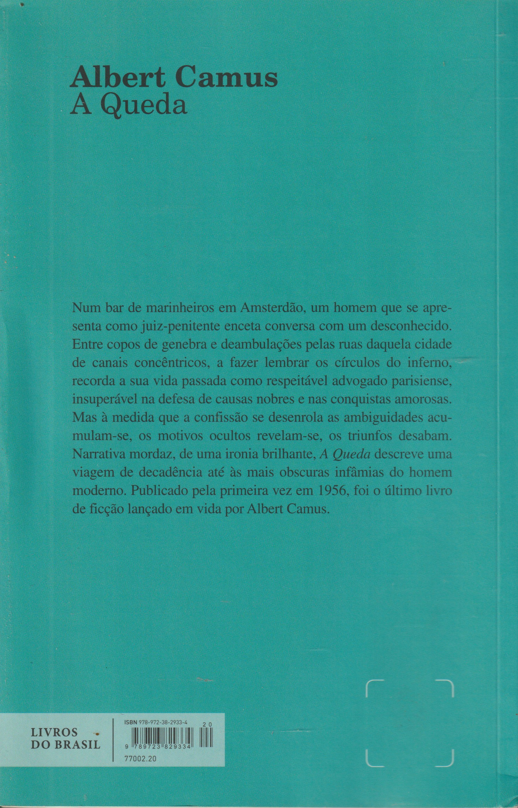 Narrativa mordaz, de uma ironia brilhante, A Queda descreve uma viagem de decadência até às mais obscuras infâmias do homem moderno. Publicado pela primeira vez em 1956, foi o último livro de ficção lançado em vida por Albert Camus