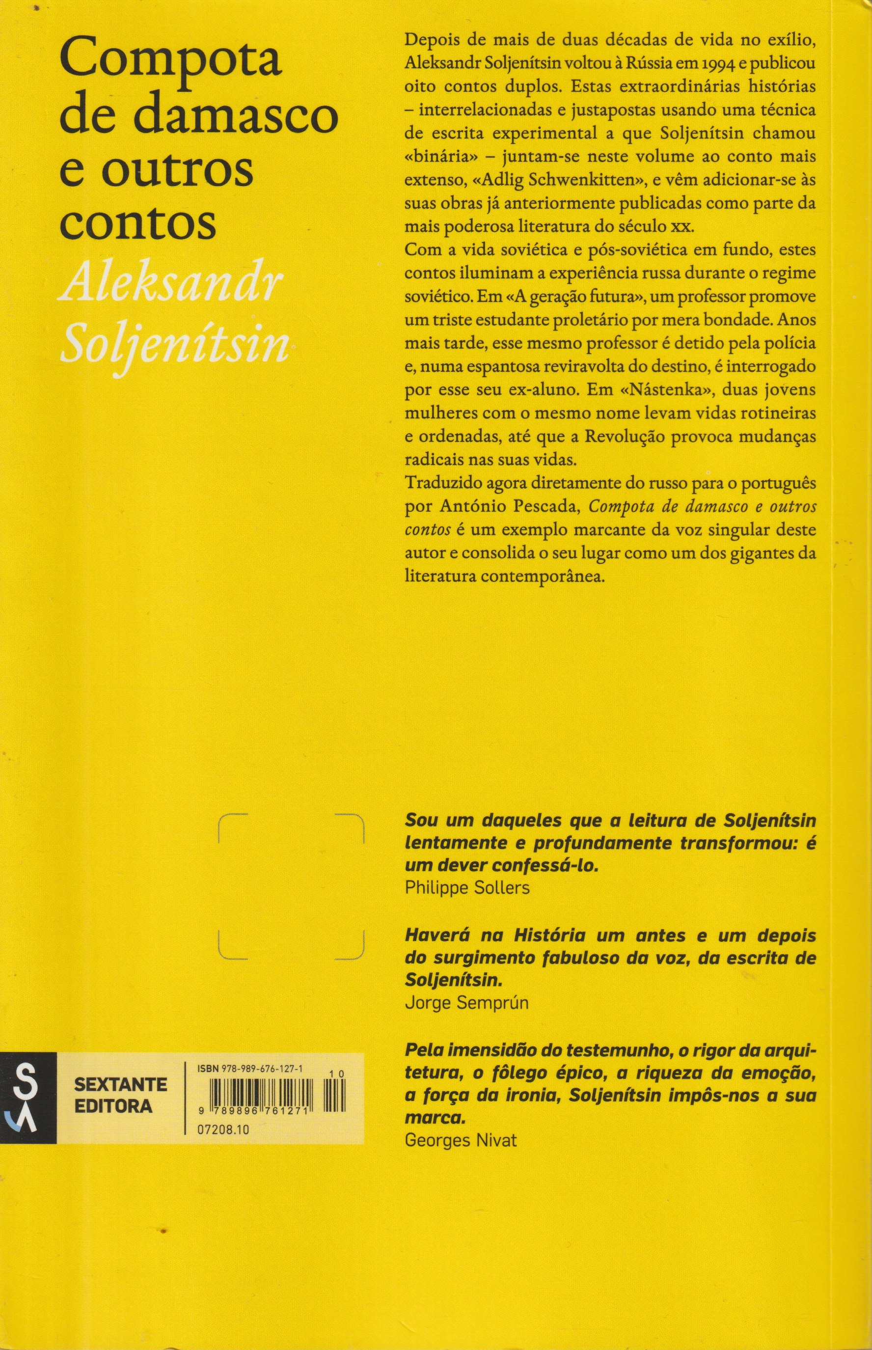 Traduzido agora diretamente do russo para o português por António Pescada, Compota de damasco e outros contos é um exemplo marcante da voz singular deste autor e consolida o seu lugar como um dos gigantes da literatura contemporânea.