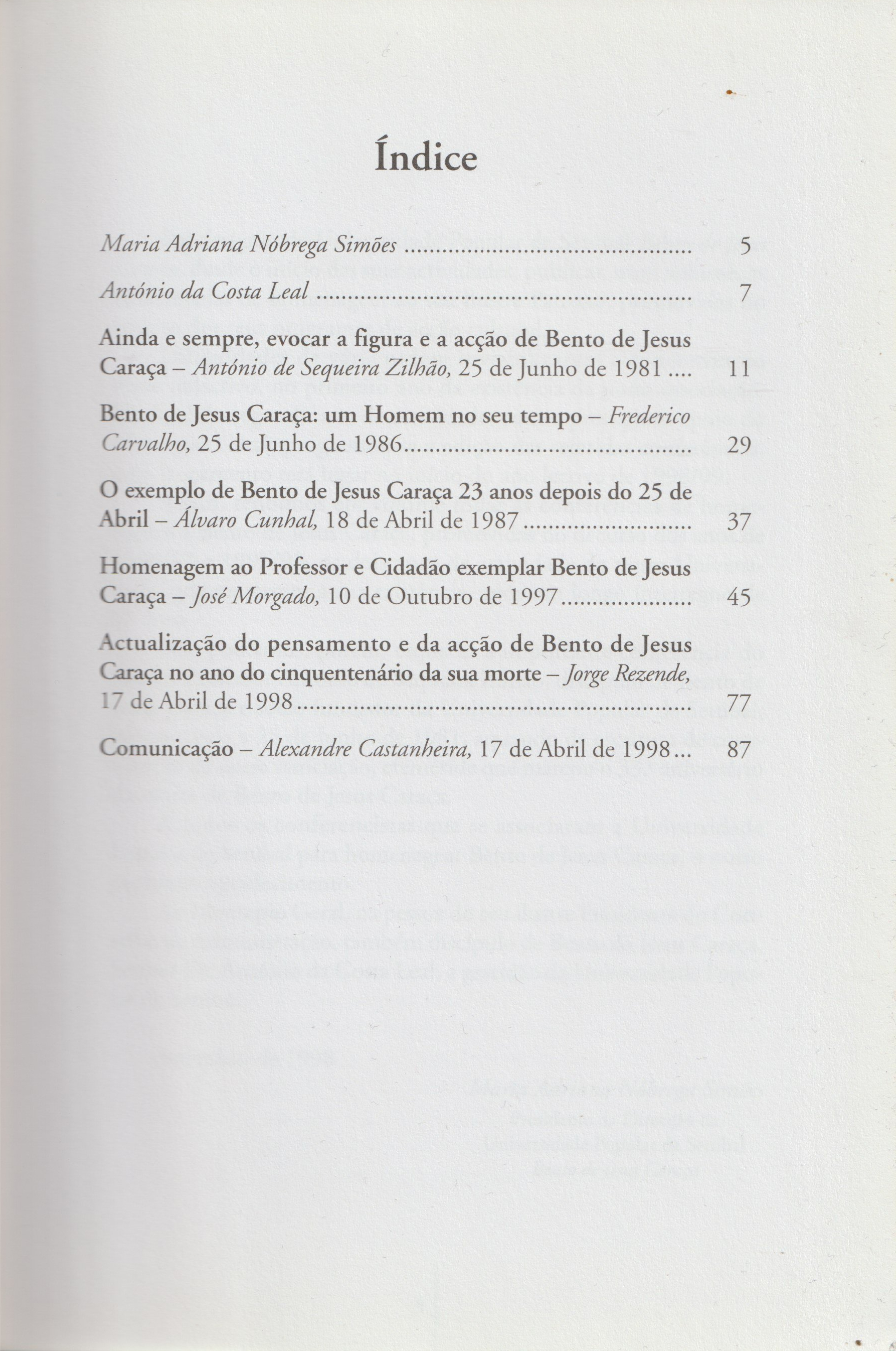 Título: Conferências de Homenagem a Bento de Jesus Caraça. Anos de 1981, 1996, 1997 e 1998