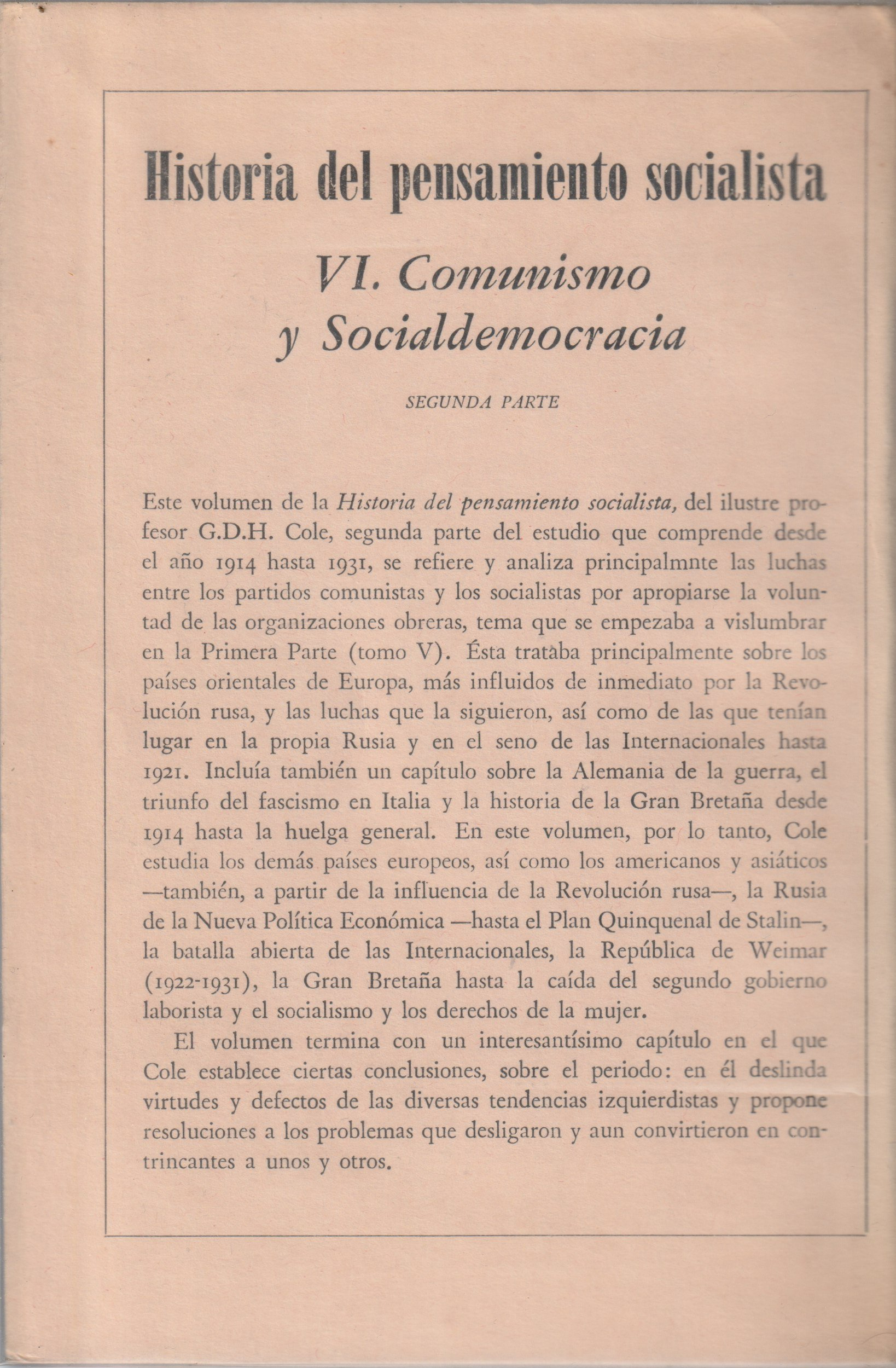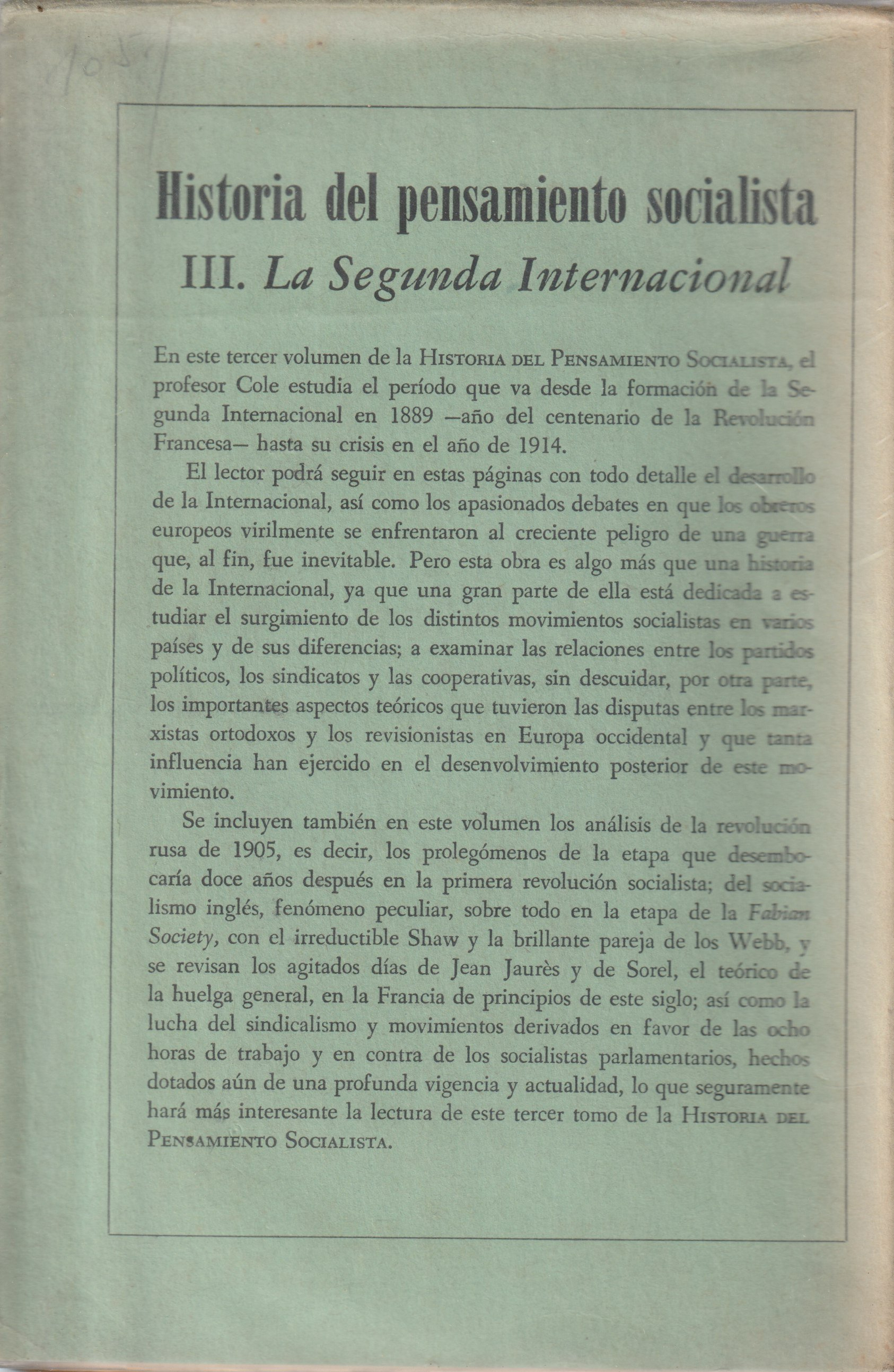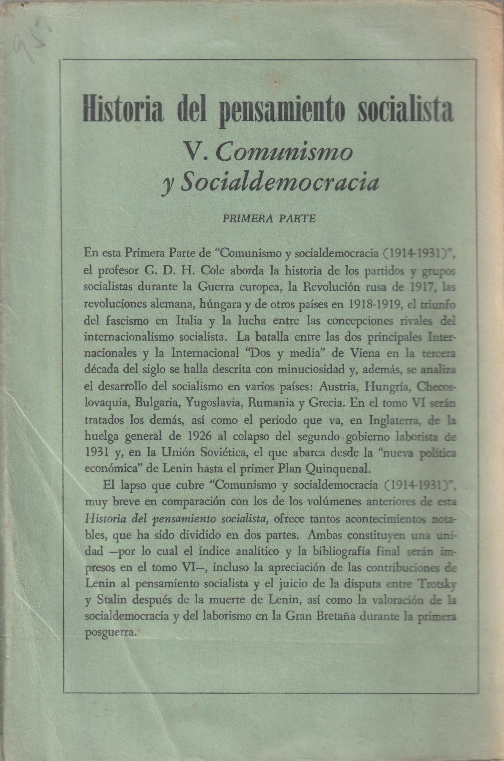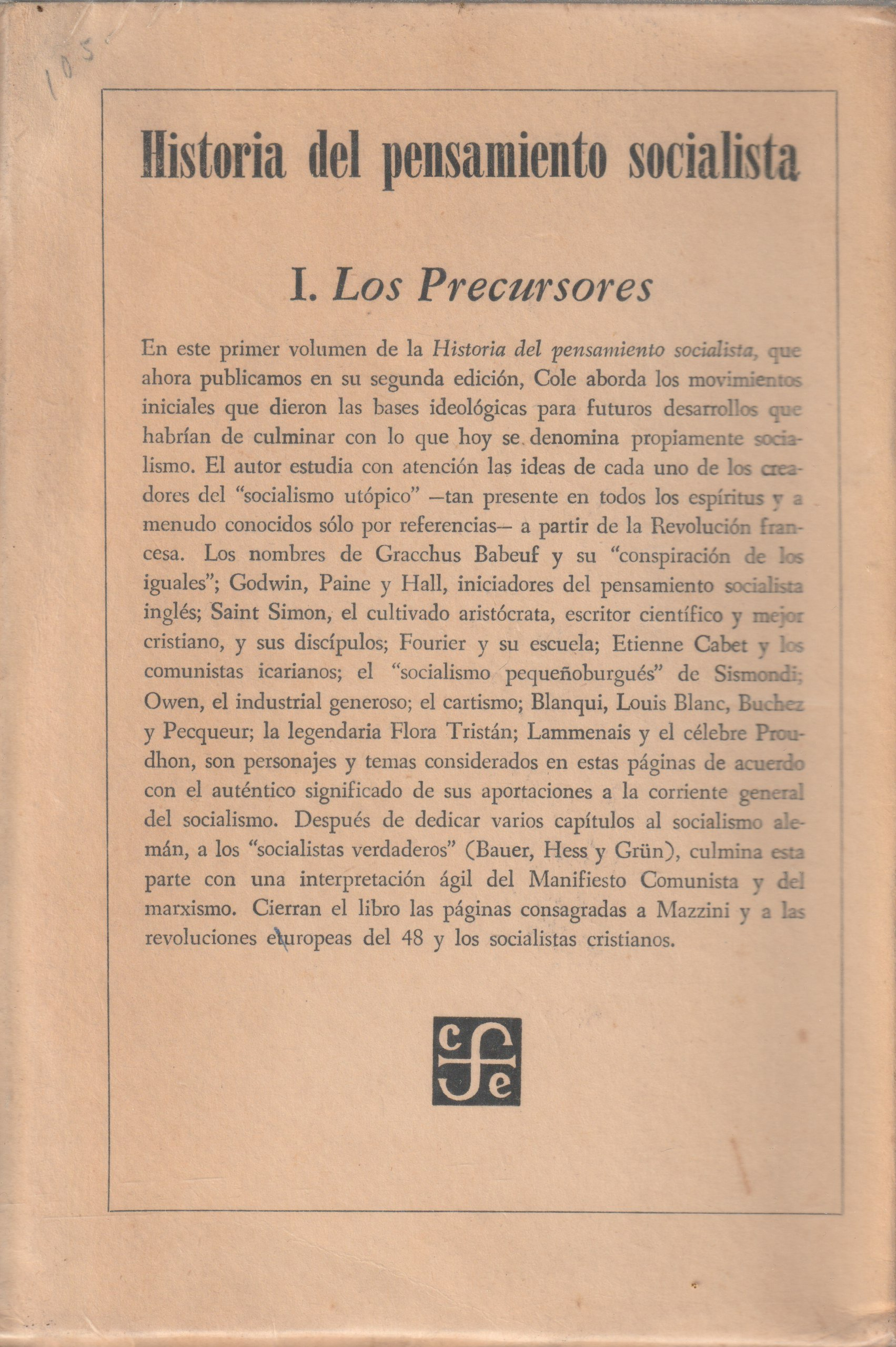 Título: Historia del Pensamiento SocialistaAutor: G. D. H. ColeEditora: Fondo de Cultura EconomicaTema: PolíticaEstado: 4Língua: EspanholEncadernação: BrochadoAno: 1957 - 1962Páginas: 2540Dimensões: 15*22Preço: 60,00 €