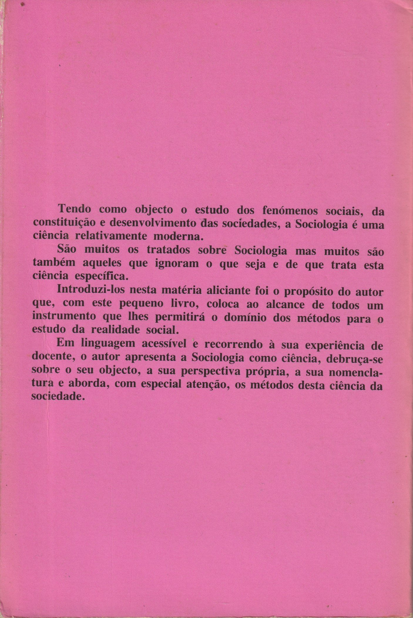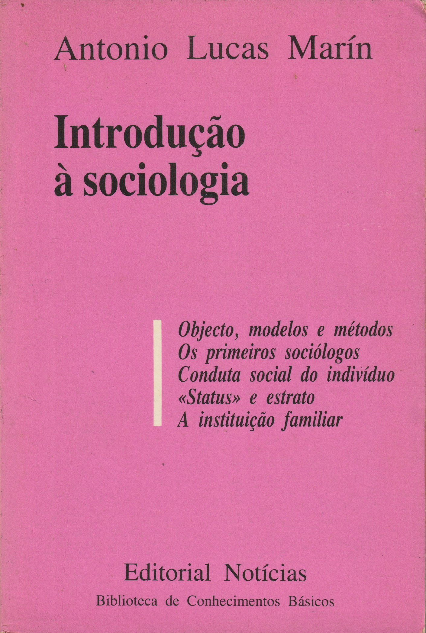 Título: Introdução à SociologiaAutor: Antonio Lucas MarínEditora: Editorial NotíciasTema: SociologiaEstado: 4Língua: PortuguêsEncadernação: BrochadoAno: s/dPáginas: 195Dimensões: 12*18Preço: 6,00 €Observações: Esgotado no Mercado