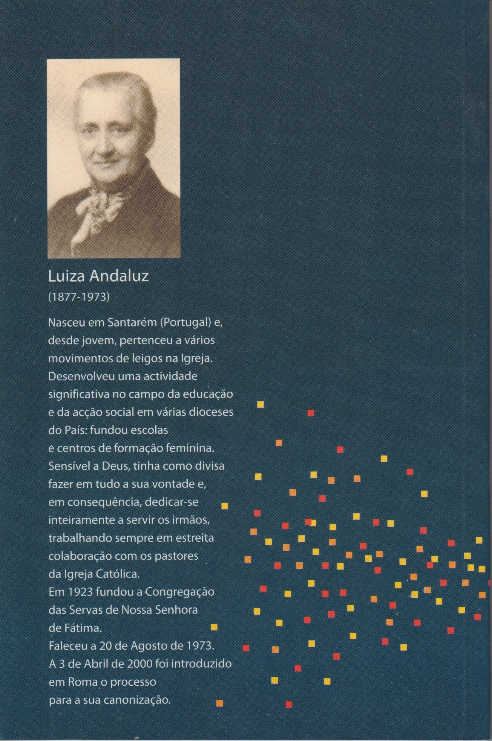 O livro aborda as intuições e o papel de Luiza Andaluz (fundadora da Congregação das Servas de Nossa Senhora de Fátima) no contexto do catolicismo português da sua época, que incluiu a Primeira República e o Estado Novo. A obra explora como Luiza Andaluz, uma mulher culta e ativa socialmente, respondeu aos desafios do anticlericalismo e às necessidades educativas e sociais da época, nomeadamente através da fundação da sua congregação e do seu trabalho com crianças desfavorecidas.