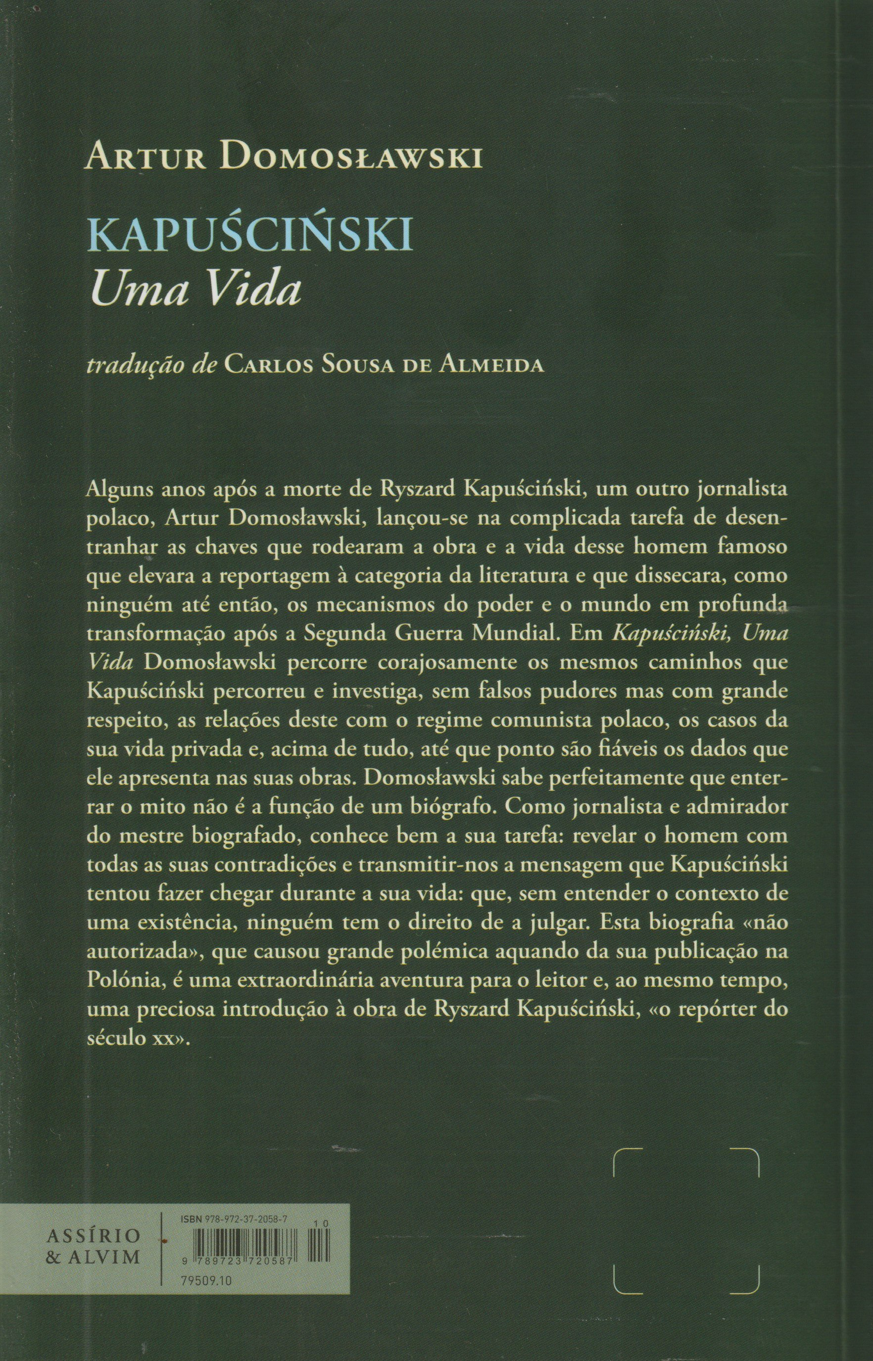 Esta biografia «não autorizada», que causou grande polémica aquando da sua publicação na Polónia, é uma extraordinária aventura para o leitor e, ao mesmo tempo, uma preciosa introdução à obra de Ryszard Kapuscinski, «o repórter do século xx».