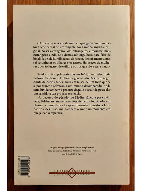 Tendo partido pelas estradas em 1665, o narrador desta história, Baldassare Embriaco, genovês do Oriente e negociante de curiosidades, anda em busca de um livro que se supõe trazer a Salvação a um mundo desamparado. Anda sem dúvida também à procura daquilo que ainda possa dar um sentido à sua própria existência.