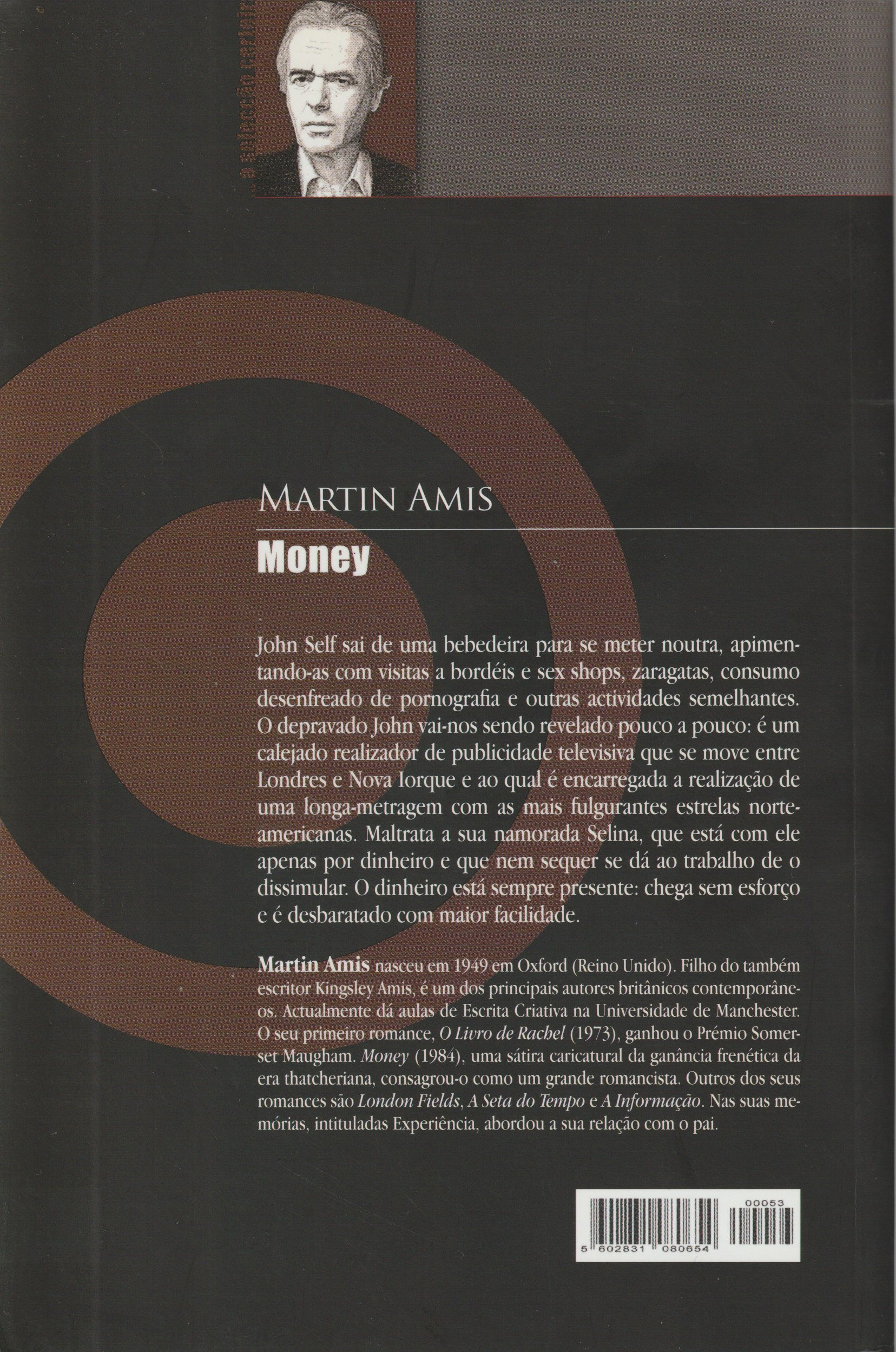 A história que se conta em Money - que o Guardian considerou o grande romance inglês da década de oitenta - decorre entre Nova Iorque e Londres, nos tempos dos motins de Brixton e do casamento real. E é a história de John Self - o seu narrador e protagonista - um homem que personifica a ganância desses anos de ouro do capitalismo, em que o desprezo pelos valores sociais e humanos só conseguia ser suplantado pelo amor ao dinheiro - e a cegueira pelo dinheiro, por sua vez, pelo terror da falta dele.