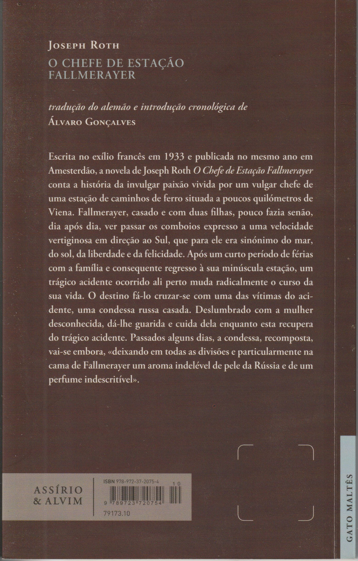 Escrita no exílio francês em 1933 e publicada no mesmo ano em Amesterdão, a novela de Joseph Roth O Chefe de Estação Fallmerayer conta a história da invulgar paixão vivida por um vulgar chefe de uma estação de caminhos de ferro situada a poucos quilómetros de Viena. Fallmerayer, casado e com duas filhas, pouco fazia senão, dia após dia, ver passar os comboios expresso a uma velocidade vertiginosa em direção ao Sul, que para ele era sinónimo do mar, do sol, da liberdade e da felicidade.