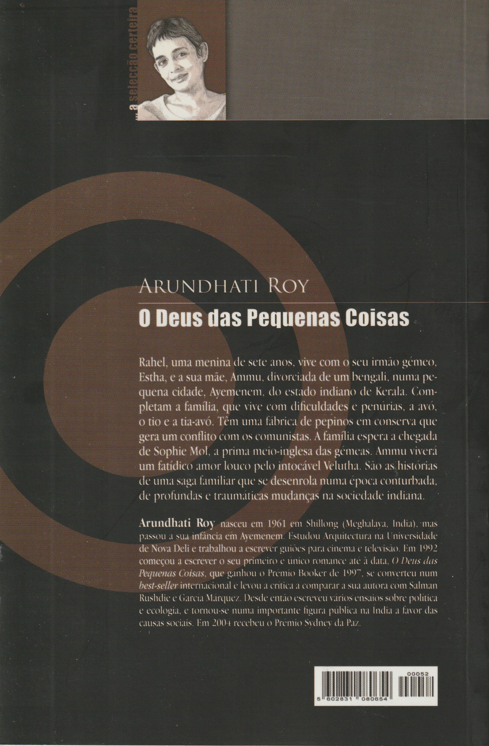 "O Deus das Pequenos Coisas" é uma apaixonante saga familiar que, pelos seus rasgos de realismo mágico, levou a crítica a comparar Arundhati Roy com Salmon Rushdie e García Márquez.