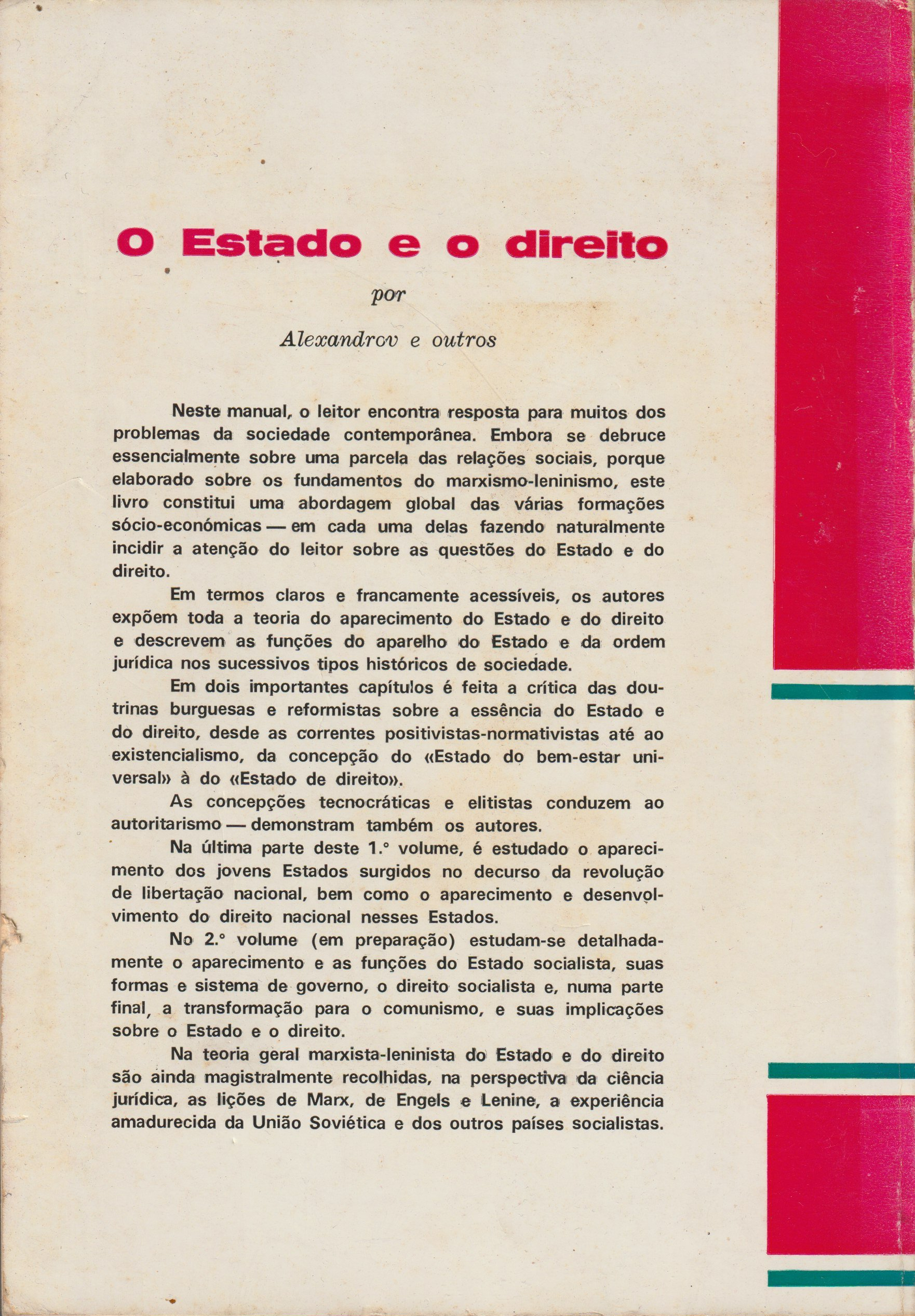 Título: O Estado e o Direito. Teoria Geral Marxista-Leninista (1º Vol.)