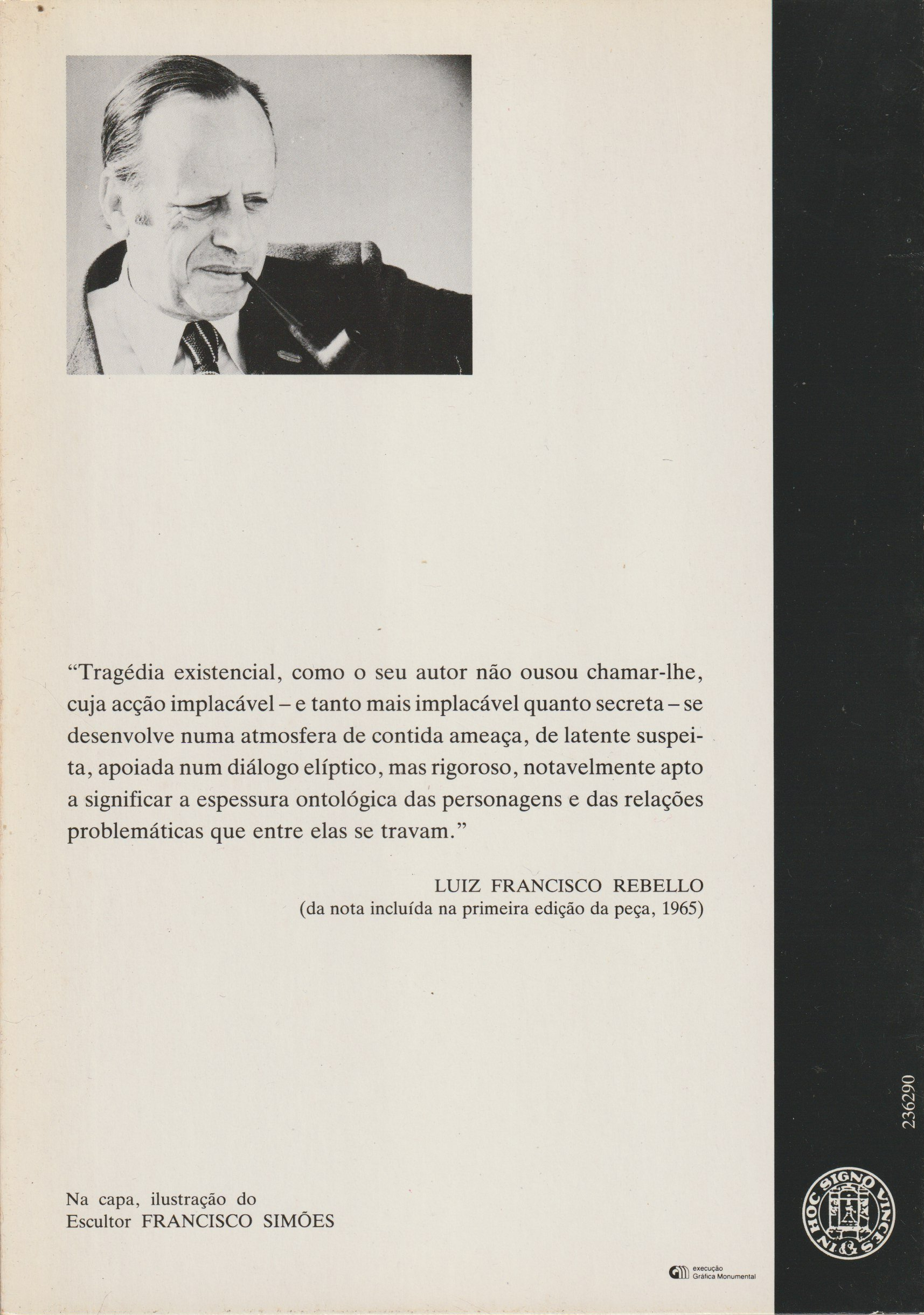 "Tragédia existencial, como o seu autor não ousou chamar-lhe, cuja acção implacável - e tanto mais implacável quanto secreta - se desenvolve numa atmosfera de contida ameaça, de latente suspeita, apoiada num diálogo elíptico, mas rigoroso, notavelmente apto a significar a espessura ontológica das personagens e das relações problemáticas que entre elas se travam."