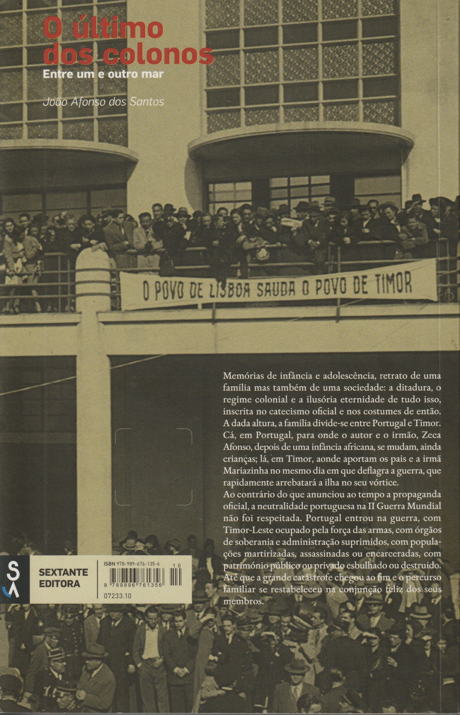 Memórias de infância e adolescência, retrato de uma família mas também de uma sociedade: a ditadura, o regime colonial e a ilusória eternidade de tudo isso, inscrita no catecismo oficial e nos costumes de então. A dada altura, a família divide-se entre Portugal e Timor. Cá, em Portugal, para onde o autor e o irmão, Zeca Afonso, depois de uma infância africana, se mudam, ainda crianças; lá, em Timor, aonde aportam os pais e a irmã Mariazinha no mesmo dia em que deflagra a guerra, que rapidamente arrebatará a ilha no seu vórtice.