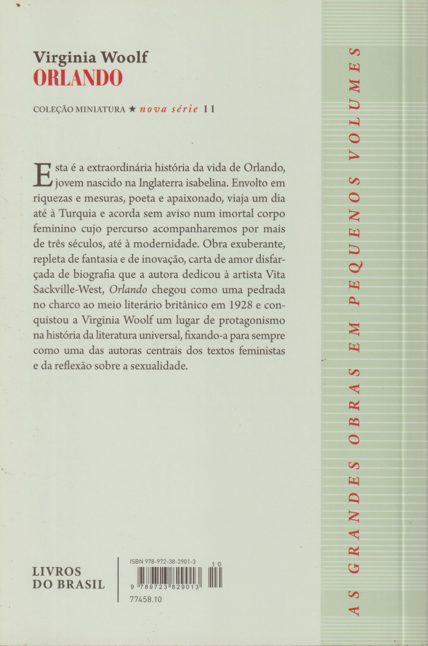 Obra exuberante, repleta de fantasia e de inovação, carta de amor disfarçada de biografia que a autora dedicou à artista Vita Sackville-West, Orlando chegou como uma pedrada no charco ao meio literário britânico em 1928 e conquistou a Virginia Woolf um lugar de protagonismo na história da literatura universal, fixando-a para sempre como uma das autoras centrais dos textos feministas e da reflexão sobre a sexualidade.
