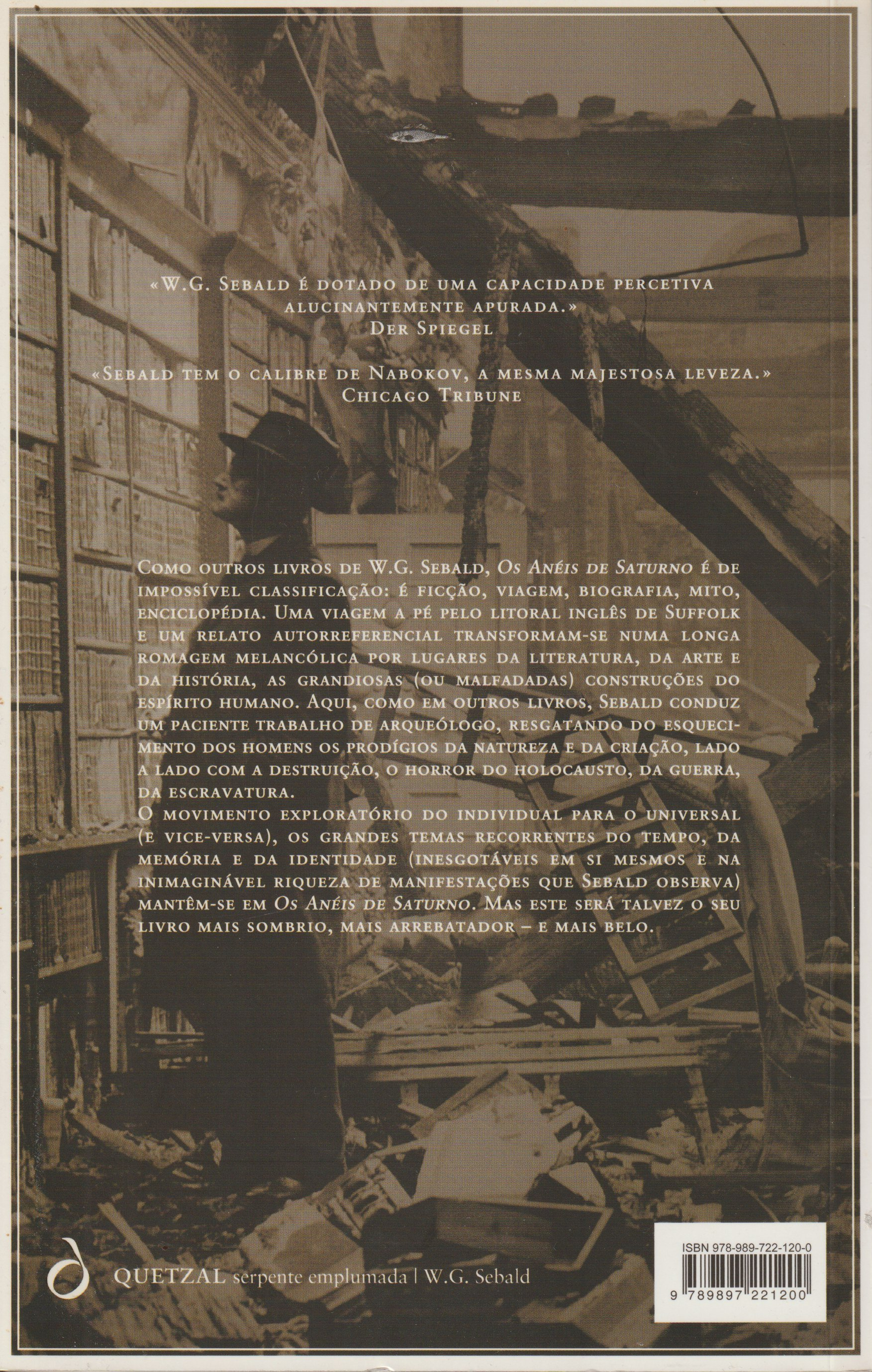 O movimento exploratório do individual para o universal (e vice-versa), os grandes temas recorrentes do tempo, da memória e da identidade (inesgotáveis em si mesmos e na inimaginável riqueza de manifestações que Sebald observa) mantêm-se em Os Anéis de Saturno. Mas este será talvez o seu livro mais sombrio, mais arrebatador - e mais belo.
