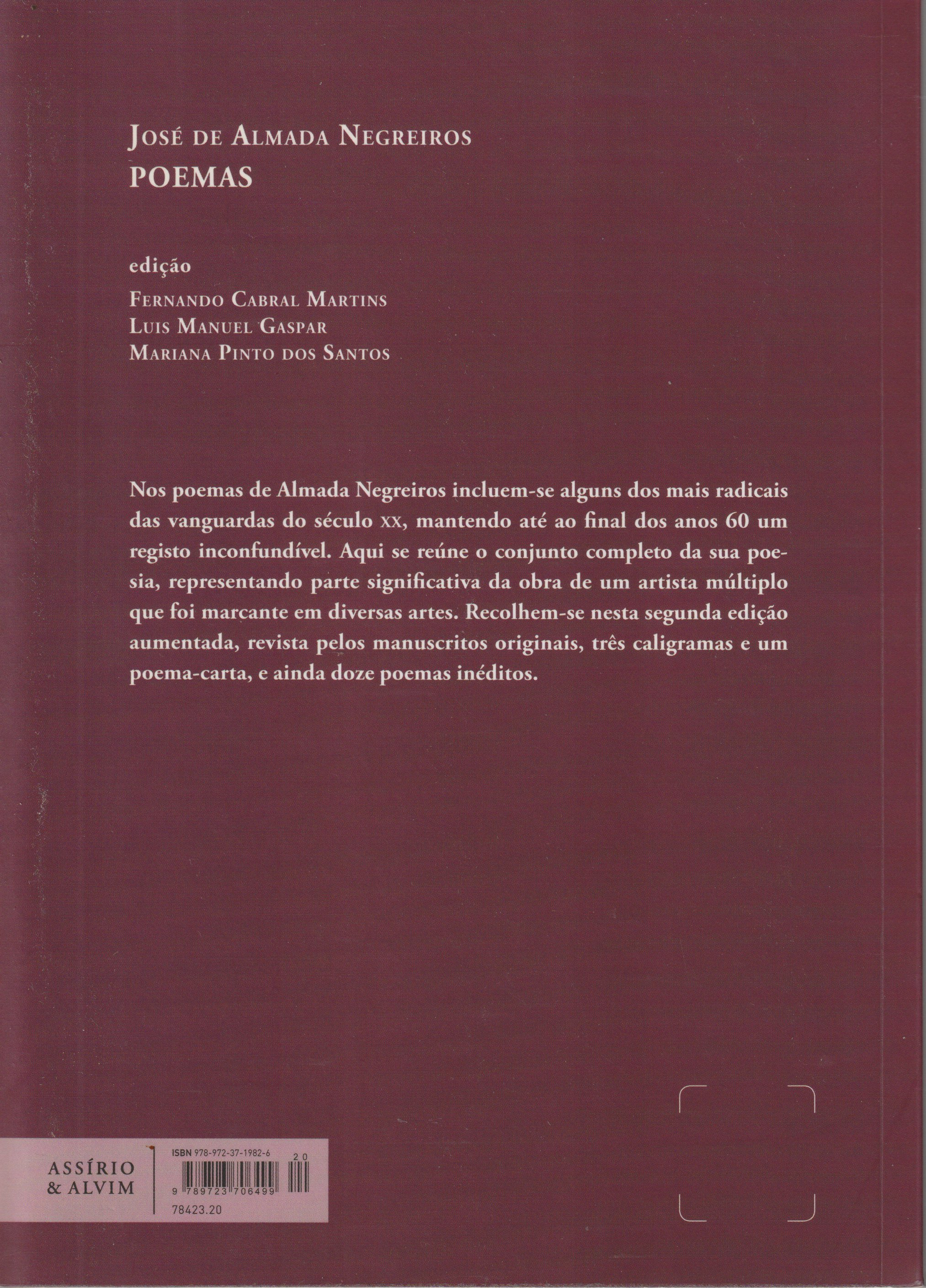Nos poemas de Almada Negreiros incluem-se alguns dos mais radicais das vanguardas do século XX, mantendo até ao final dos anos 60 um registo inconfundível. Aqui se reúne o conjunto completo da sua poesia, representando parte significativa da obra de um artista múltiplo que foi marcante em diversas artes.