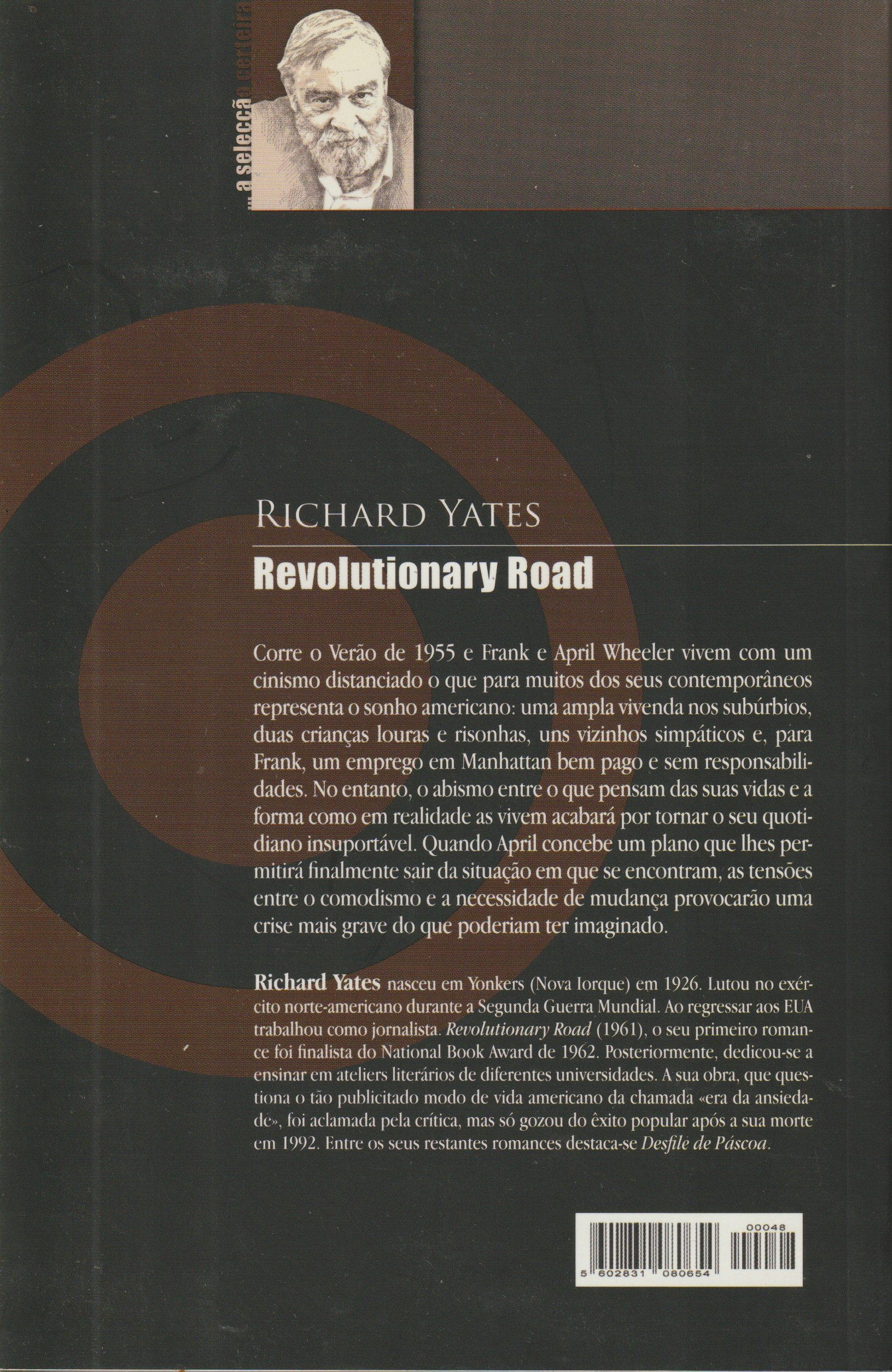 O primeiro romance de Richard Yates, Revolutionary Road, tornou-se um clássico logo após a sua publicação em 1961. Nele, Yates oferece um retrato definitivo das promessas por cumprir e do desabar do sonho americano. Continua hoje a ser o retrato da sociedade americana. Um casal jovem e promissor, Frank e April Wheeler, vive com os dois filhos num subúrbio próspero de Connecticut, em meados dos anos 50. Porém, a aparência de bem-estar esconde uma frustração terrível resultante da incapacidade de se sentirem felizes e realizados tanto no seu relacionamento como nas respectivas carreiras. Frank está preso num emprego de escritório bem pago mas entediante e April é uma dona de casa frustrada por não ter conseguido seguir uma promissora carreira de actriz. Determinados a identificarem-se como superiores à crescente população suburbana que os rodeia, decidem ir para a França onde estarão mais aptos a desenvolver as suas capacidades artísticas, livres das exigências consumistas da vida numa América capitalista. Contudo, o seu relacionamento deteriora-se num ciclo interminável de brigas, ciúmes e recriminações, o que irá colocar em risco a viagem e os sonhos de auto-realização.