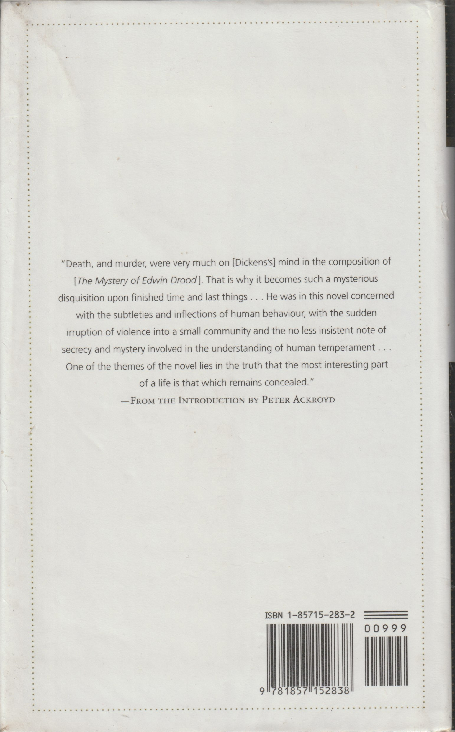 As in many of Dickens's greatest novels, the gulf between appearance and reality drives the action. Set in the seemingly innocuous cathedral town of Cloisterham, the story rapidly darkens with a sense of impending evil. Central to the plot is John Jasper: in public he is a man of integrity and benevolence, in private he is an opium addict. And while seeming to smile on the engagement of his nephew, Edwin Drood, he is, in fact, consumed by jealousy, driven to terrify the boy's fiancée and to plot the murder of Edwin himself. Though The Mystery of Edwin Drood is one of its author's darkest books, it also bustles with a vast roster of memorable-and delightfully named-minor characters: Mrs. Billikins, the landlady; the foolish Mr. Sapsea; the domineering philanthropist, Mr. Honeythunder; and the mysterious Datchery.